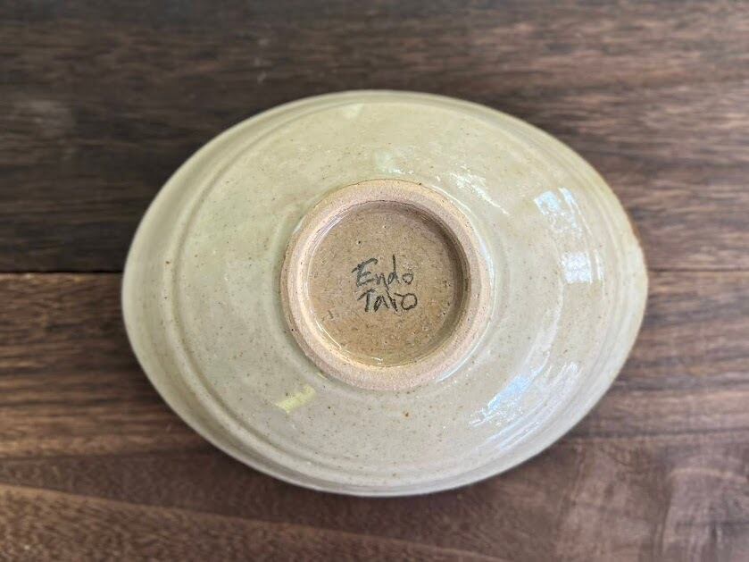陶器 遠藤太郎 楕円鉢 二彩(緑)